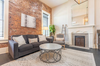 The Officer Loft is one of the two Lofts in the Evans building. Which is to the right of the Qualls Building. Right beside the boutique called Restored. This charming loft comes with a cozy Livingroom and a Smart TV, as well as 2 historical restored fireplaces! A full kitchen with a high top dining table for 2 and one bedroom with a Smart TV and a queen sized bed! We stock our bathroom with lots of towels and toiletries for you to use during your stay! The Officer Loft is perfect for anyone in need of a getaway!